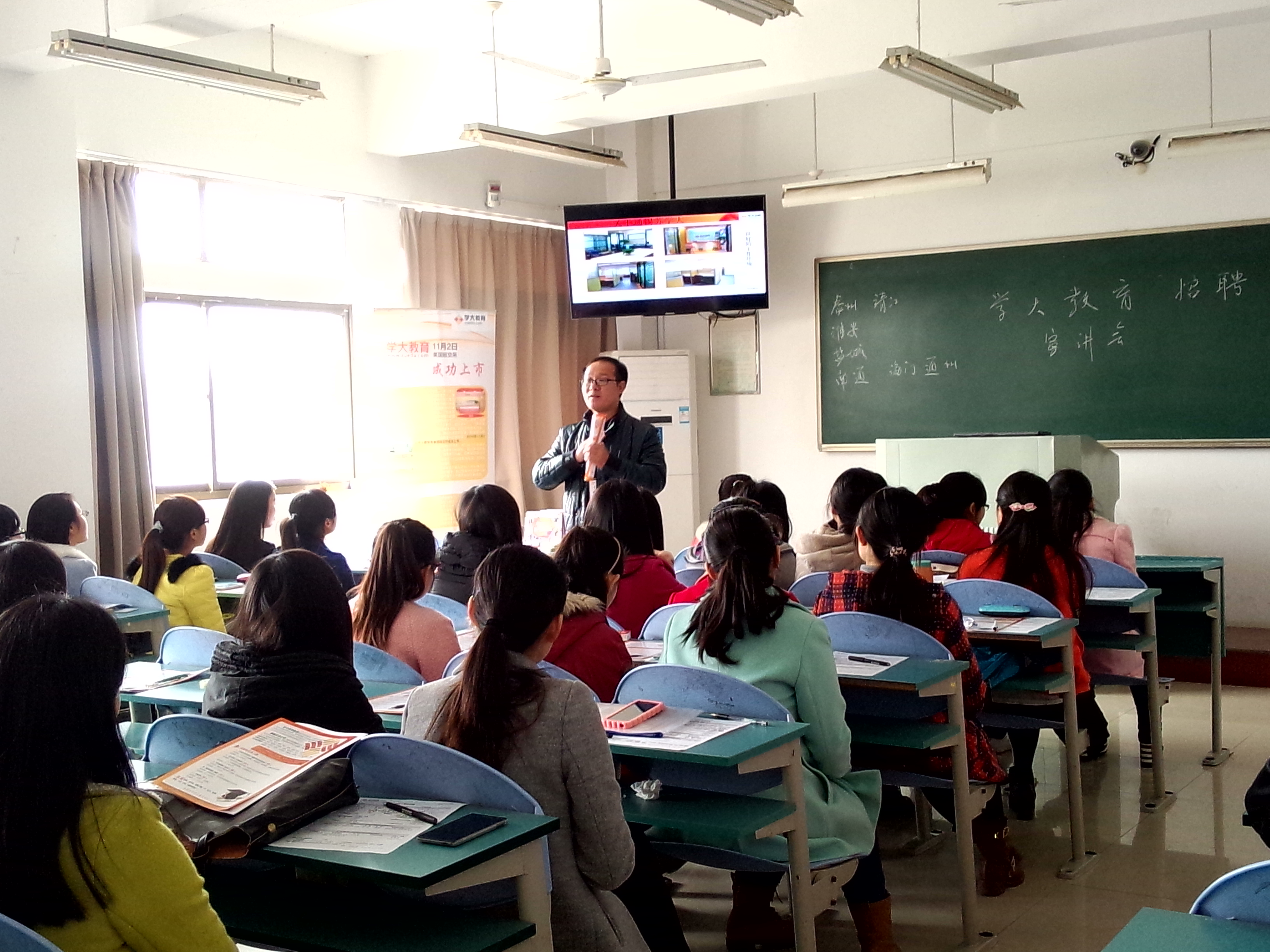 宣讲会上,赵小稳校长首先对学大教育机构组成、发展历史、工作环境作了简要介绍,使学生们对学大教育企业有了初步的认识。接着他向同学们讲述了学大教育的价值观以及对学大教育员工们的愿景,展现了学大教育在人才培养方面的策略方法。最后赵小稳校长向大家详细介绍了该企业的招聘职位以及应聘条件。宣讲会接近尾声时,在场的求职者们就薪资待遇、就业后的发展情况与赵小稳校长展开交流,赵校长都耐心细致地给予了回答。下午,学大教育就教师、教育咨询师、市场专员等职位对应聘者进行了笔试和面试。
