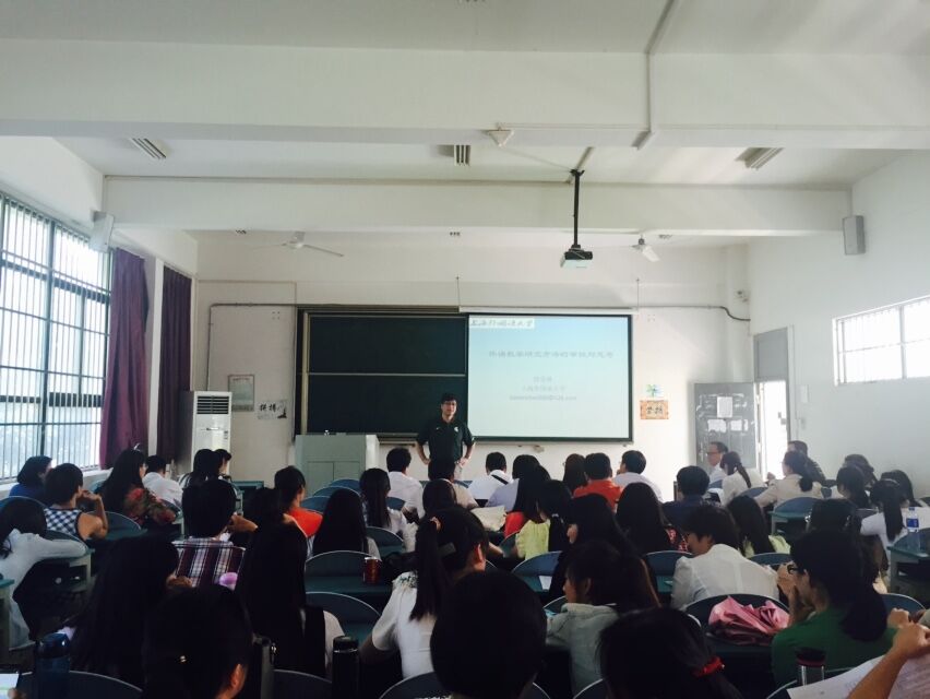 陈坚林从外语教学研究方法的概念出发,对量化和质化的研究方法进行了梳理,全面分析了外语教学研究方法的选择和应用,就目前外语学科的前沿领域“大数据时代”进行了阐述,并集中阐释了大数据“4V”特征对当下教学的挑战与启示。陈坚林通过问答等形式与师生展开了良好的互动,并一一回答了大家的问题。