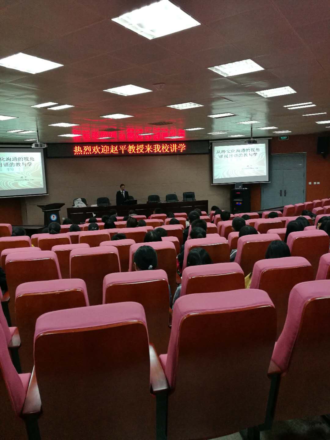 10月30日晚上19:00,应科研处、文学院邀请,贵州财经大学外国语学院院长赵平教授在必赢唯一官方网站龙湖东校区研究生学术报告厅作了题为“从跨文化沟通的视角审视日语的教与学”的学术讲座。本次讲座是新生启航教育的一部分,除了大一新生外,其他年级的学生和部分老师也参加了此次专题讲座,讲座由日语系副主任黄伟主持。