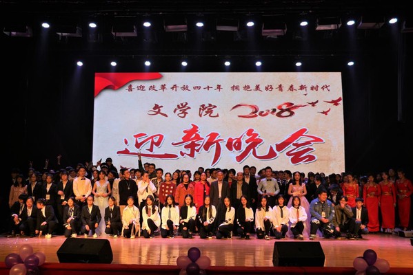 10月26日晚,文学院在艺术楼报告厅举办2018级“喜迎改革开放40年,拥抱美好青春新时代”迎新晚会。文学院党委书记袁世俊、副院长李雪红、党委副书记刘晓光以及18级新生辅导员出席本次晚会,2017级和2018级全体同学观看本次晚会。