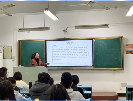 2018年11月15日晚7点,我院公共外语教学部教师谭娟在东校区明德楼410教室作了题为“Minorities in the US- Asian Americans and Native Americans”(《美国少数民族之亚裔和印第安人》)的专题讲座。