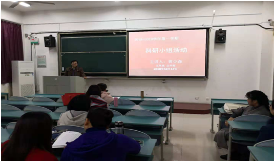 11月17日,按照本学期教学、科研工作计划,公共外语教学部开展了科研小组活动。本次科研活动由曹少森老师主讲,主讲的题目是网络热词的翻译及其对教学效果的促进作用。曹少森老师运用实例解析了网络热词的形成、发展及其翻译存在的意义,并从自身在教学中的体会,对网络热词的翻译现象在教学中的运用进行分享。公外部老师积极参与了讨论,感觉我们身边确实有不少值得思考的问题。 (撰稿:吴勇 审核:吴利琴)