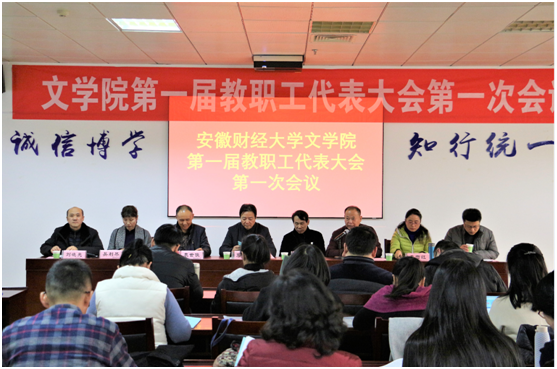 2018年12月19日下午,文学院第一届教职工代表大会第一次会议在图书馆八楼会议室召开。校党委常委、纪委书记宣扬出席并致辞,校工会主席鲁妙新、学院党政负责人及50名教职工代表参加会议。