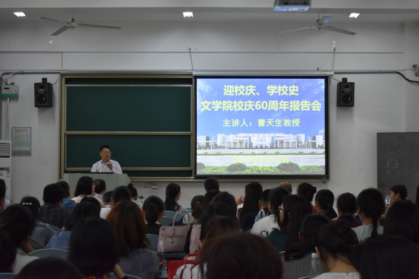为进一步了解学校悠久的办学历史和深厚的文化底蕴,传承学校精神文化,增进爱校荣校情怀,5月15日下午,文学院在慎思楼105举办“迎校庆 学校史”校庆专题活动,邀请曹天生教授为学院全体教职工做校史专题讲座、组织全体教职工参观校史馆。讲座由院党委书记袁世俊主持。