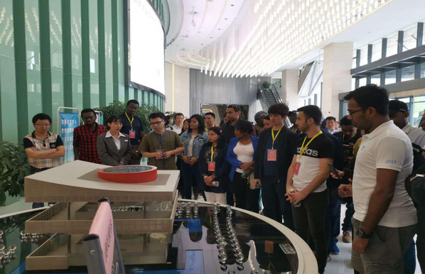 6月6日上午,常锟、褚汉在活动举办地安徽水利和顺大酒店提供实时翻译。下午,两位教师陪同外宾参观了蚌埠市规划馆和蚌埠市博物馆,其中褚汉老师为市规划馆进行了英文讲解。