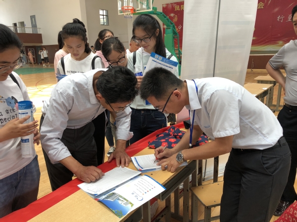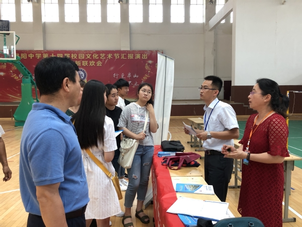 为进一步加强2019年招生宣传工作,提升我校生源质量,6月25日,文学院副院长李雪红、团委书记李俊忆、日语系副主任贺大伟、辅导员蒋浩一行赴凤阳中学参加“双高对接会”,开展招生宣传工作。