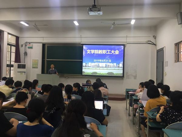 8月30日下午,文学院于慎思楼103教室召开新学期全体教工大会,院长方军,副院长吴利琴、李雪红,院党委副书记刘晓光,副院长朱松林出席大会,学院全体教职工参加了此次会议,会议由院党委书记袁世俊主持。