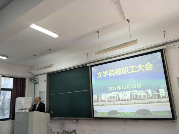 10月30日下午,文学院在思慎楼305教室召开全院教职工政治学习会,院党委书记袁世俊、副院长李雪红、副院长朱松林和学院全院教职工参加会议,会议由学院党委副书记刘晓光主持。