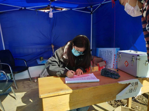 志愿者的工作内容大部分比较简单,在简单了解卡点工作流程后,便可以立即进入角色,开始工作。他们对来往人员和车辆出入进行管理登记,对出入的人员进行体温测量,对防疫物资进行分发,对防疫知识进行宣传。但是在这看似简单的工作下,却有着不为人知的辛苦。