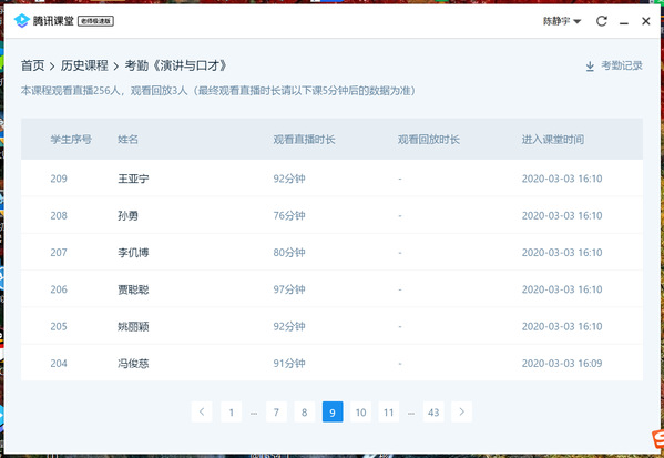 腾讯课堂考勤记录