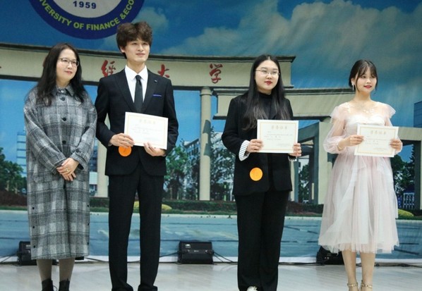 经过激烈角逐,来自金融学院20金融学类7班的郝安琪同学获得一等奖,财政与公共管理学院20公共管理类3班叶建树和国际经济贸易学院20国商2班姚晨悦同学获得二等奖,会计学院19会计JG1班关雯心、文学院20日语0班黄一鹏和20商务英语1班王雪莹同学获得三等奖,金融学院 19金融工程3班王利斌和文学院20商务英语1班吕佳琪同学获得最具潜力奖,文学院20新传1班石成瑞和财政与公共管理学院 20公共管理类1班王皓语同学获得最具表现力奖。