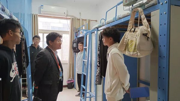 为加强学生管理工作,及时了解学生情况和思想动态,为同学们营造一个安全、健康和舒适的学习生活环境,10月14日下午,学院党委书记王龙建、副书记虞鲲和辅导员深入学生宿舍,走访看望2021级新生。