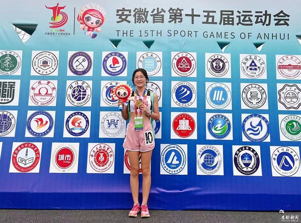 曹佳雪,女,文学院2020级商务英语专业学生。在刚刚结束的安徽省第十五届省运会中,她荣获女子甲组5000米金牌、女子甲组1500米银牌,并打破2项省记录。除了体育赛场上的骄人成绩,在校期间她还获国家励志奖学金,学校体育活动奖、综合素质奖、优秀成果奖、社会活动奖等奖项。