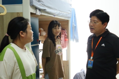 10月1日下午,学院党委书记王龙建,党委副书记虞鲲,团委书记以及辅导员深入学生宿舍看望学生。走访过程中,王龙建与同学们亲切交流,详细了解了学生近期学习和生活情况以及思想动态。他鼓励同学们要珍惜大学时光,努力学习专业知识,做好人生目标规划。同时叮嘱大家要遵守学校疫情防控工作要求,注意个人卫生;要提高安全意识,时刻注意人身安全、饮食安全和宿舍安全,谨防网络诈骗。