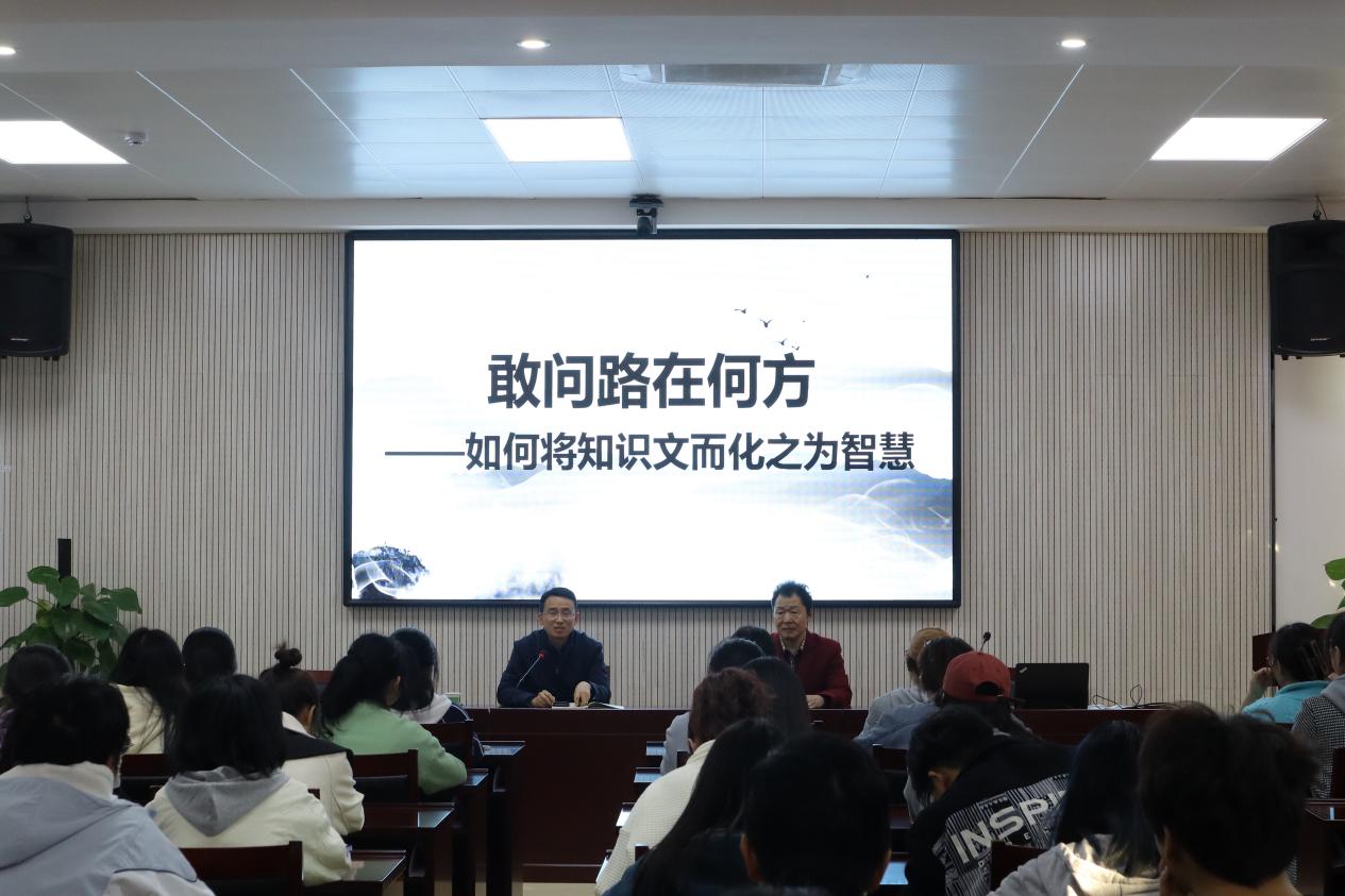 11月9日下午3时,必赢唯一官方网站客座教授、研究生实践导师马振伦在西校图书馆学术报告厅,为文学院师生作了题为“敢问路在何方——如何将知识文而化之为智慧”暨“国学经典导读班”第七次学术讲座。近50位学院师生参与了本次讲座。讲座由文学院院长方军主持。