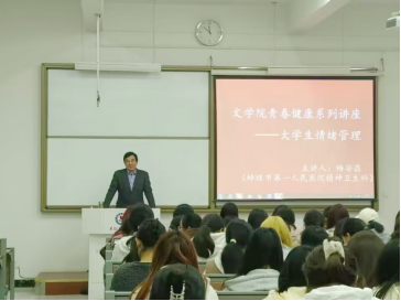 3月15日,应文学院邀请,蚌埠第一人民医院精神卫生科主任医师梅安昌为学院师生作了题为“大学生情绪管理”的专题讲座。本次讲座是文学院青春健康系列讲座之一。讲座由文学院党委书记王龙建主持。
