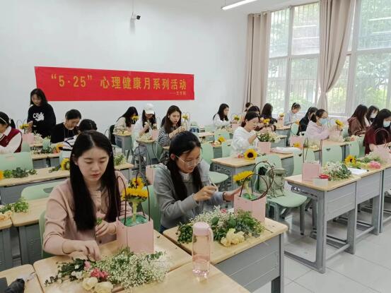 5月24日下午,由学生处大学生心理健康教育中心主办,文学院二级心理辅导站、易班学生工作站承办的心理健康月系列活动之插花沙龙活动在西校区通慧楼108教室举行。