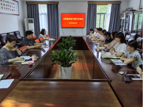 6月28日下午,文学院在二楼会议室召开新任学生干部工作会议。学院党委书记王龙建,党委副书记虞鲲,团委书记范璇,团学青组织、易班学生工作站、大艺团、英语协会、小语种协会主要负责人参加了会议。