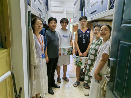 为了解学生的学习、生活情况以及思想状况,让学生充分感受到学院的关爱与温暖,8月3日下午,学院党委书记王龙建、党委副书记虞鲲一行深入学生宿舍,看望慰问暑期留校学生,并为学生发放了牛奶等慰问品。