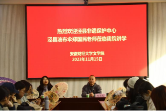 11月15日下午,在龙湖西校区图书馆南楼三楼会议室,中国高级工艺美术师、安徽省省级非物质文化遗产代表性传承人郑国民老师莅临我院开展“中国伞文化”专题讲座。本次讲座由文学院副院长常春梅主持,学院部分师生聆听了讲座。