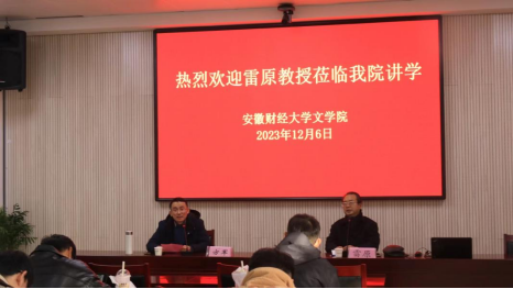 为弘扬中华优秀传统文化,传承国学精髓,坚定文化自信,12月6日下午,西安交通大学东方管理研究院院长雷原教授受邀来我院作“第二个结合背景下乡村振兴之路”主题讲座。讲座由文学院院长方军教授主持,学院部分师生聆听了讲座。