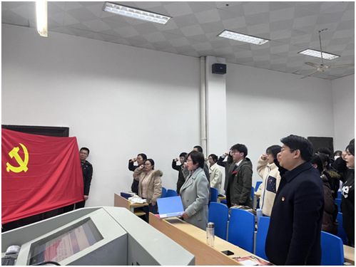 宣誓仪式在嘹亮的《国际歌》中拉开序幕。王龙建在讲话中勉励新发展党员牢记入党誓词,坚定信仰、信念、信心,努力学习党史、新中国史、改革开放史和社会主义发展史。同时,鼓励入党积极分子提高党性修养,增强党员意识,进一步向党组织靠拢。他要求新发展党员讲政治,有信念,增强“四个意识”,坚定“四个自信”,做政治合格的党员;讲规矩,有纪律,自觉遵守党的政治纪律、组织纪律、廉洁纪律、群众纪律、工作纪律和生活纪律,遵守校规校纪,做到心中有党、心中有民、心中有责、心中有戒,做执行纪律合格的党员;讲道德,有品行,明大德、守公德、严私德,做品德合格的党员;讲奉献,有作为,做发挥作用合格的党员。最后,他希望与会党员和入党积极分子,不断学习专业知识和理论知识,立志做有理想、敢担当、能吃苦、肯奋斗的新时代好青年,在未来将青春之花绽放在祖国最需要的地方。