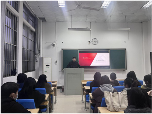 伍倩倩宣读预备党员名单,并指导预备党员佩戴党员徽章。虞鲲带领19名新党员面向党旗,高举右拳,庄严宣誓。铮铮誓言,声声震耳,字字入心,表达了新党员对党的忠诚和为共产主义奋斗终身的决心。2020级商务英语专业黎慧同学代表预备党员发言,她表示,作为新时代党员,要把入党誓词作为自己终身的追求和实践,在今后,以更高的标准严格要求自己,不忘初心、牢记使命,发挥好共产党员的先锋模范作用,砥砺前行,踔厉奋发,为中华民族的伟大复兴贡献青春力量。最后,宣誓仪式在慷慨激昂的《国歌》声中圆满落幕。