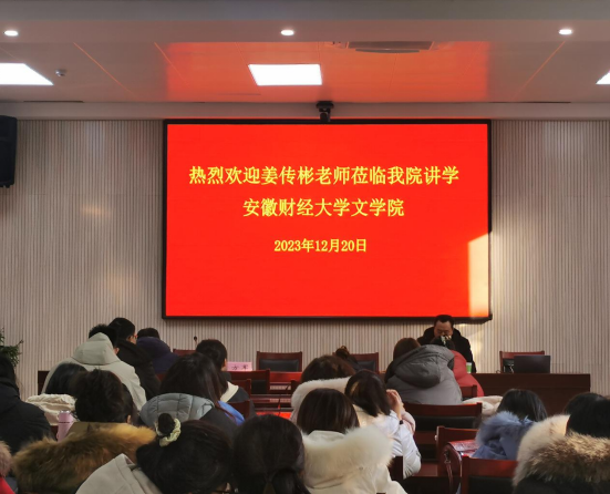 2023年12月20日下午,颍上县中医院“国医堂”专家、安徽省基层名中医姜传彬受邀来我院作了题为“中医科普与自我保健”的讲座。本次讲座由文学院院长方军教授主持,学院部分师生聆听了讲座。