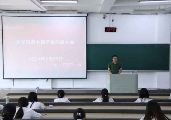 5月29日,文学院在龙湖西校区通慧楼201教室召开第七届学生代表大会。学院团委书记范璇、团委副书记李伟,学生会主席团成员、各部门负责人以及学生代表参加了本次大会。会议由学生会主席团成员赵亚婷主持。