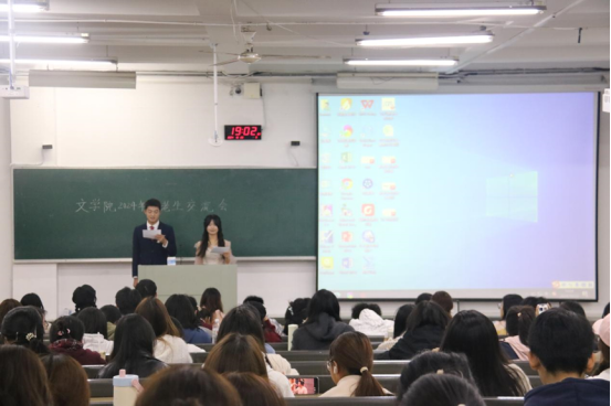 为帮助2024级新生更好地融入大学生活,找准学习方向,10月23日晚,文学院在龙湖西校区通慧楼103教室召开新老生交流会,老生代表和2024级全体新生参加会议。